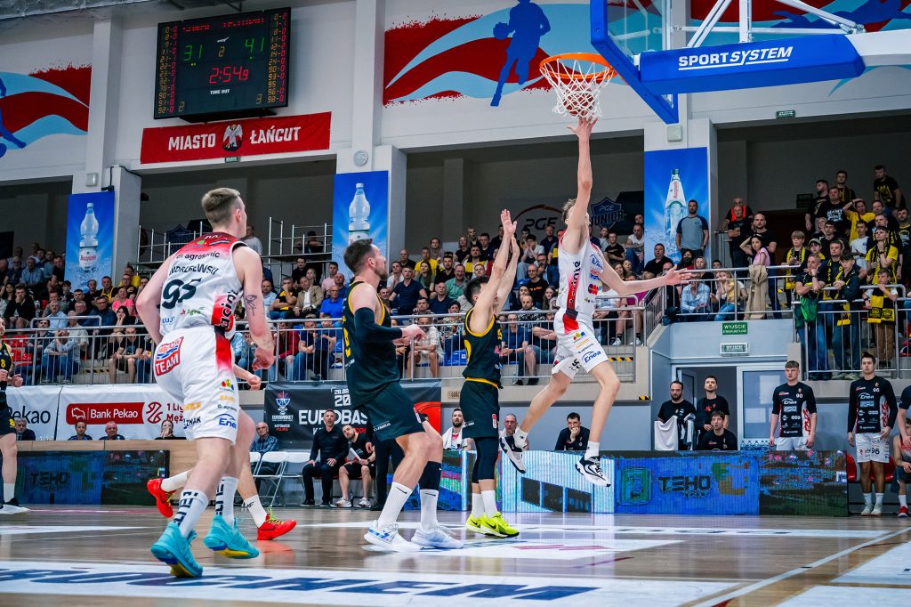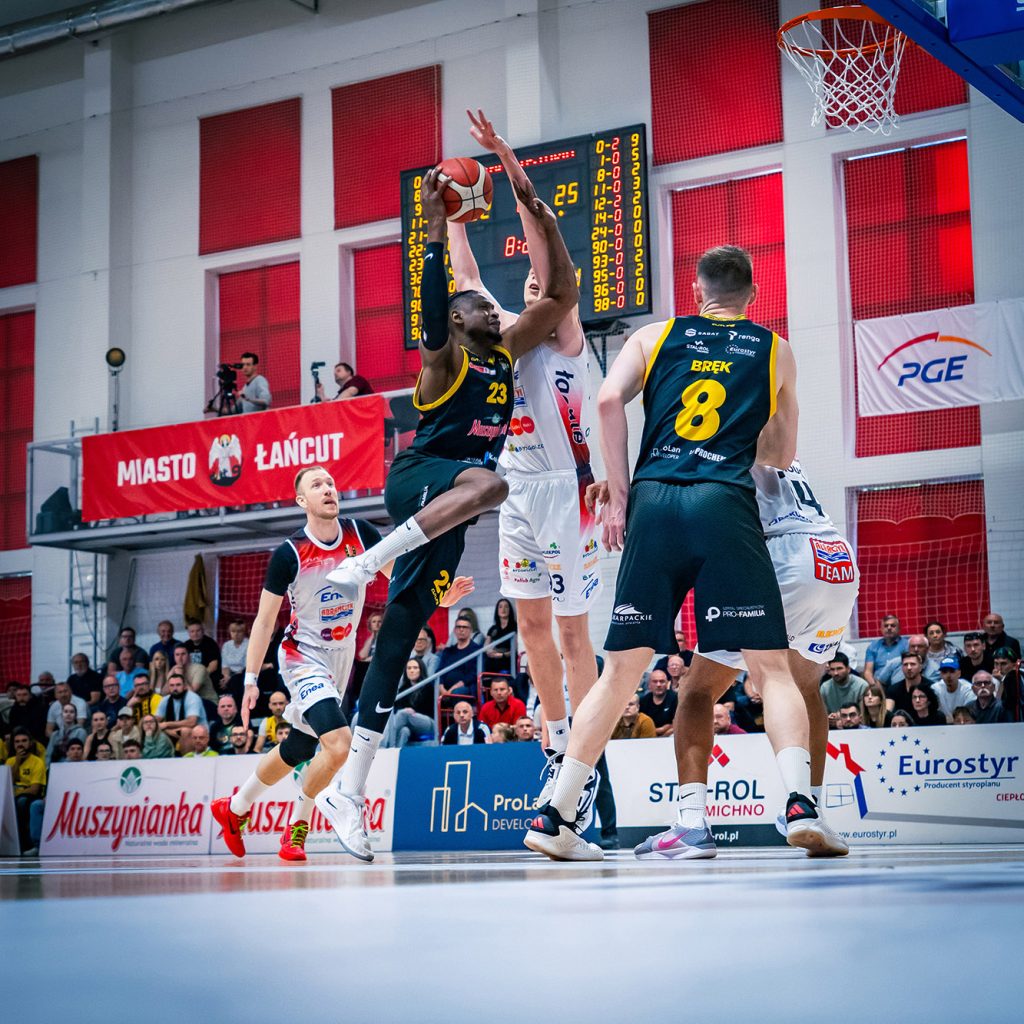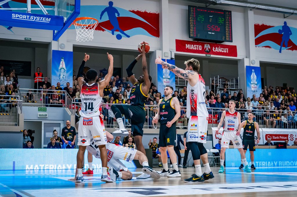 Gra gospodarzy opierała się w głównej mierze na skuteczności Biram Faye (13 pkt, 67 proc. rzutów z gry). Senegalczyka próbowali wspierać Filip Struski i Patryk Kędel, ale to nie wystarczyło by dogonić dobrze funkcjonujący zespół rywali. Ci po przerwie w błyskawicznym tempie powiększali przewagę. Łańcucianie próbowali rzutami za trzy niwelować dystans, ale bezskutecznie (trafili 7/30, a bydgoszczanie 14/29).
