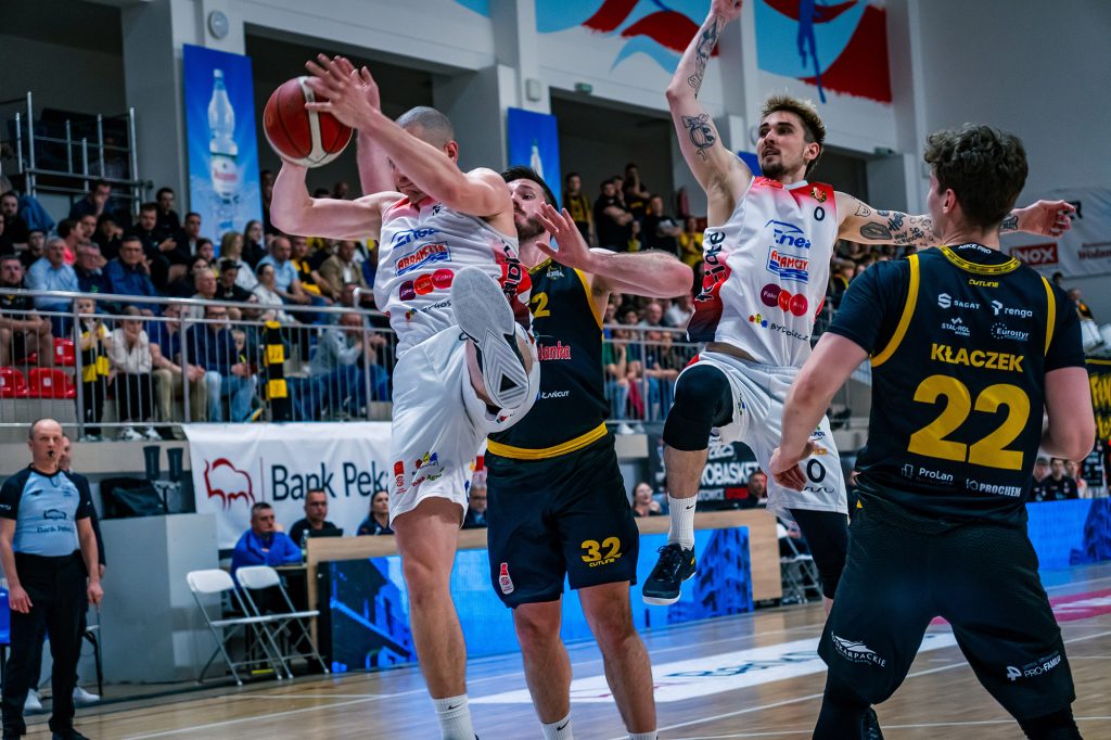 Koszykarze Muszynianki Sokoła po raz drugi nie wykorzystali atutu własnego parkietu. Półfinałowa rywalizacja toczy się dalej. Bydgoszczanie od II kwarty przejęli inicjatywę i zdecydowanie wypunktowali pogrążonym przez długi czas w chaosie zespół z Łańcuta. Półfinalistę wyłoni zatem piąty mecz w środę 7 maja w Bydgoszczy.