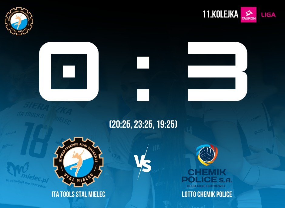 Siatkarki ITA TOOLS Stali Mielec przegrały już czwarty mecz z rzędu. W niedzielny wieczór uległy ekipie LOTTO Chemika Police 0-3, a mecz trwał 86 minut.
