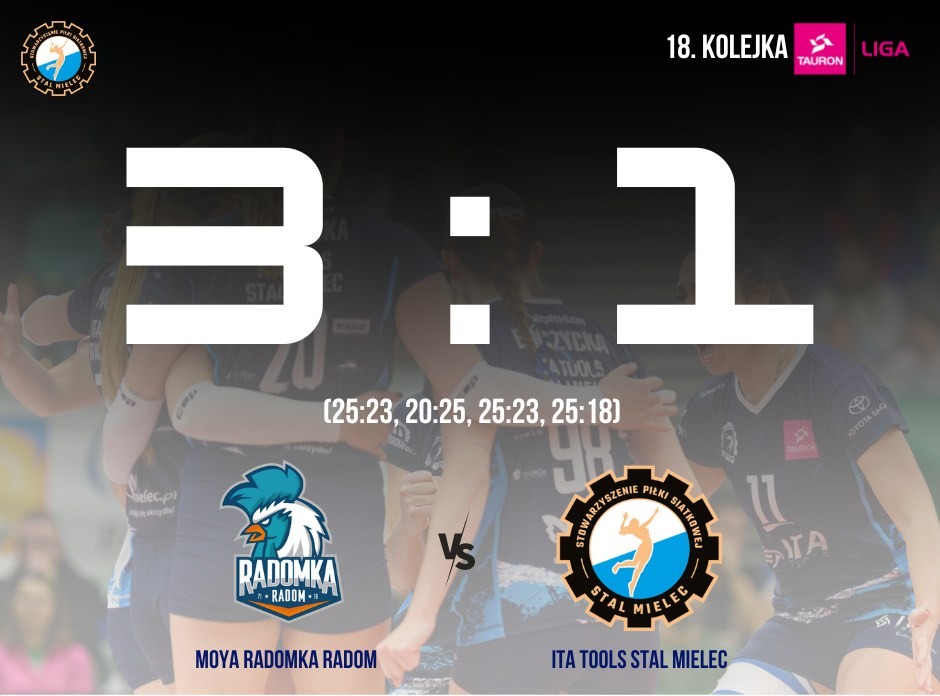 Siatkarki ITA TOOLS Stali przegrały bardzo ważny mecz w kontekscie walki o play-off w Radomiu z MOYA Radomką 1-3. Rywalki dzięki zwycięstwu wyprzedziły mielczanki w tabeli, spychając je na dziewiąte miejsce.