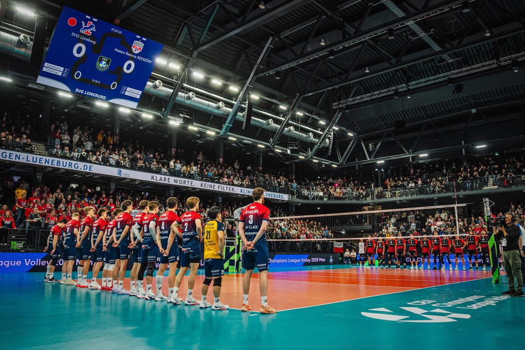 SVG Lüneburg do tej pory miał na koncie tylko jedną wygraną nad outsiderem grupy Sportingiem Lizbona. Znacznie lepiej zespół trenera Stefana Hubnera spisuje się W Bundeslidze, gdzie jest liderem. W czternastoosobowej kadrze zespołu jest tylko trzech Niemców. Są natomiast Kanadyjczycy , Szwedzi, Amerykanie, Fin, Duńczyk i Japończyk. Ten ostatni Sho Takashasi ma za sobą grę w Polsce w sezonie 2019/2020 w LUK Politechnice Lublin, a w latach 2022/2024 w zespole Exact System Hemarpol Częstochowa, awansując z nim do PlusLigi. Z niemieckim zespołem Asseco Resovia rywalizowali przed dwoma laty w finale Pucharu CEV, dwukrotnie wygrywając 3-0.