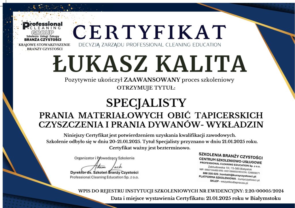 Od samego początku powstawania firmy właściciel postawił na solidne przygotowanie merytoryczne i praktyczne. Zanim Ozontap rozpoczął regularną obsługę klientów, właściciel zdobywał wiedzę podczas licznych szkoleń teoretycznych i praktycznych, obejmujących m.in. techniki profesjonalnego czyszczenia tapicerek, dobór bezpiecznych środków czyszczących oraz pracę z nowoczesnym sprzętem.