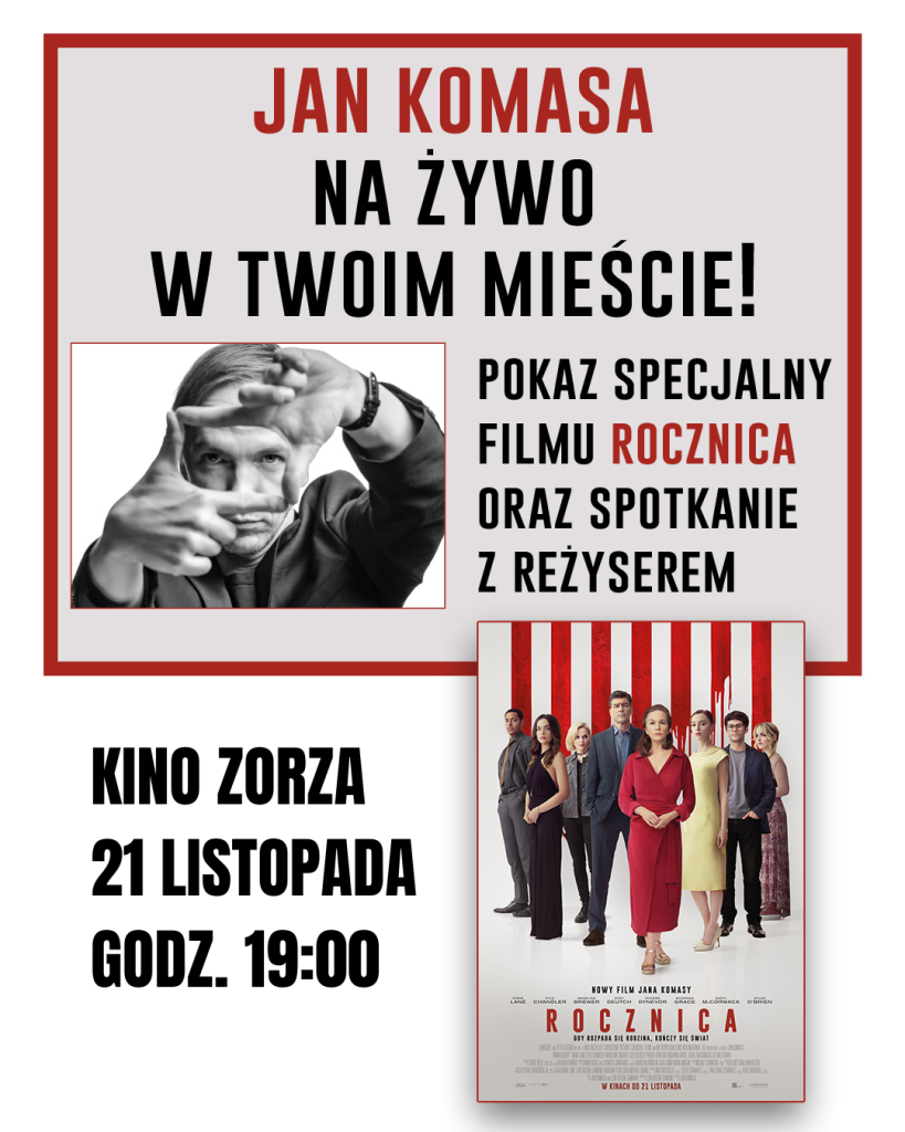 Premiera filmu „Rocznica”, po którym odbędzie się spotkanie z reżyserem Janem Komasą rozpocznie się w piątek 21 listopada o godz. 19:00 w kinie Zorza. Bilety 25 zł