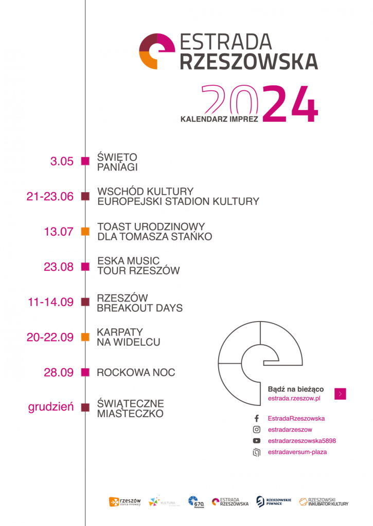 Estrada Rzeszowska ogłasza kalendarz wydarzeń na 2024 rok, który obfituje w różnorodne i inspirujące imprezy kulturalne- od festiwali muzycznych po święta lokalne. Oferta jest skierowana do odbiorców z każdej grupy wiekowej, zarówno do mieszkańców Rzeszowa jak i miłośników kultury z całej Polski.