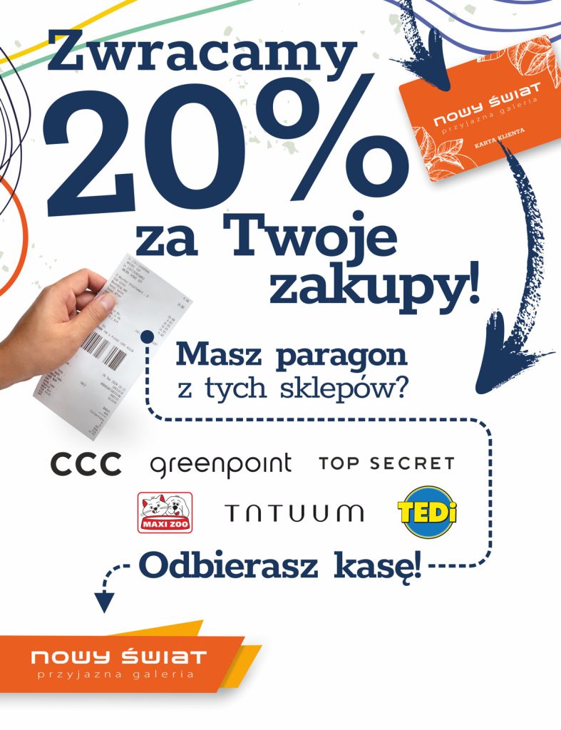Po dokonaniu zakupów w bieżącym miesiącu Akcji należy udać się z paragonem lub fakturą do Punktu Informacyjnego w Galerii „Nowy Świat” (poziom 0).