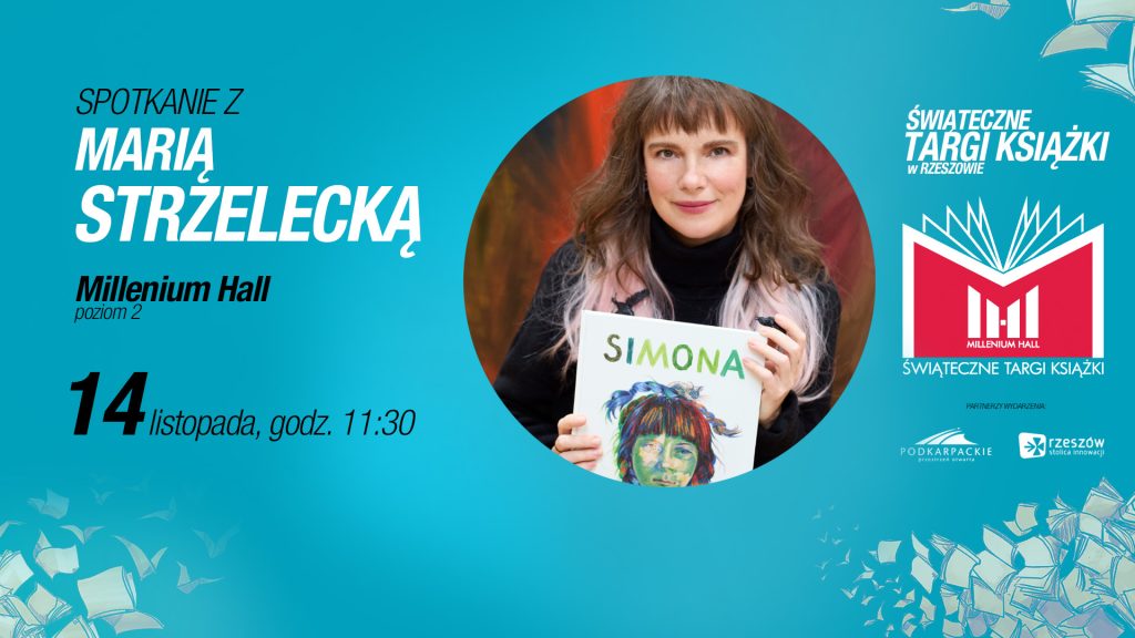Maria Strzelecka – książka: „Simona” – doktor sztuk plastycznych, malarka, ilustratorka, autorka książek dla dzieci oraz filmów animowanych. Absolwentka, a obecnie wykładowczyni warszawskiej Akademii Sztuk Pięknych. Wielbicielka dalekiej Północy i całkiem bliskiego Beskidu Niskiego. Mama dwójki dzieci i opiekunka psa malamuta. Zdobywczyni wielu nagród literackich i graficznych, m.in.: Nagrody Literackiej m.st. Warszawy, Nagrody im. Ferdynanda Wspaniałego dla najlepszej książki dziecięcej oraz kilkukrotnie nagrody w konkursie Książka Roku Polskiej Sekcji IBBY. Jej poprzednie książki to: „Beskid bez kitu”, „Beskid bez kitu. Zima”, „Hajda. Beskid bez kitu” i „Nikifor”.
