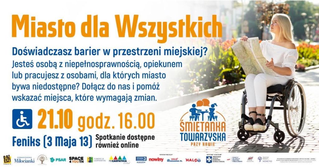 Wydarzenie odbywać się będzie pod hasłem: „Miasto dla Wszystkich – Tworzymy Mapę Dostępności”. W trakcie spotkania porozmawiamy o tym, jak wygląda codzienność osób z niepełnosprawnościami w przestrzeni miejskiej, z jakimi barierami wciąż się mierzą oraz jak wspólnie możemy uczynić Rzeszów miastem naprawdę przyjaznym dla wszystkich.